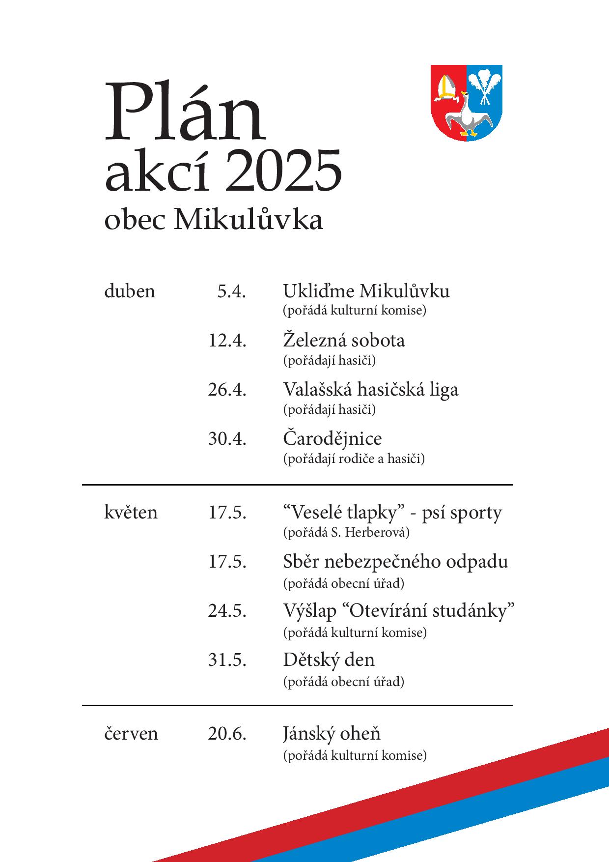 12, Kulturní komise po měsíci práce předložila přehled plánovaných akcí na nejbližší měsíce. Během posledních týdnů jsme strávili mnoho času tím, abychom dali dohromady informace, plány a reálné možnosti naše i ostatních aktivních účastníků společenského života v Mikulůvce. Spousta věcí je zatím v řešení, pracujeme na tom. V sobotu již proběhla první akce ze seznamu.