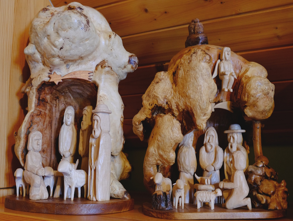 Vlastně celý podzim i zimu dělám betlémy. Během roku jezdím hodně na ryby do severních Čech a tam celou dobu u vody vyřezávám figurky, ze kterých pak v zimě doma skládám betlémy. Jsem tam každý rok přes léto několik týdnů, takže je pak z čeho vybírat. Na příští rok mám už nachystaných asi dvacet nových betlémů. Figurky dělám z lípy, korpusy hledám v přírodě. Vybírám zajímavé kusy dřeva, pokroucené kořeny a kmeny… Najdou se nádherné věci. Letos jsem vytvořil takových padesát betlémů. Něco se prodá, něco jde na výstavy a pak se mi vrátí zpět. Některé mám jen pro sebe, ani je nikam nepůjčuju.