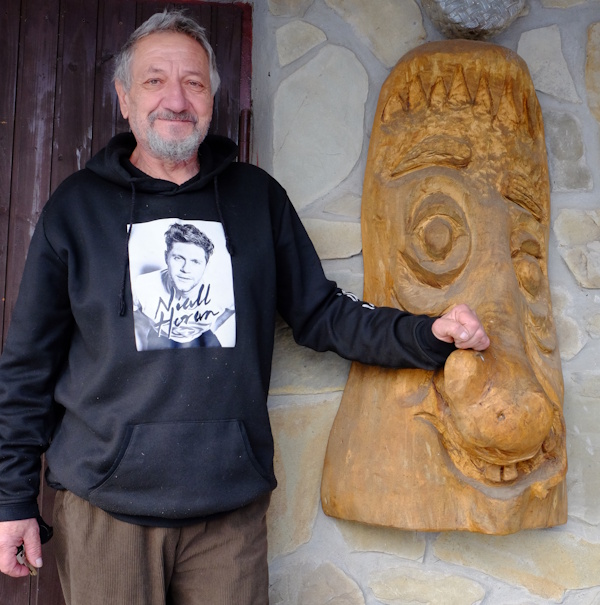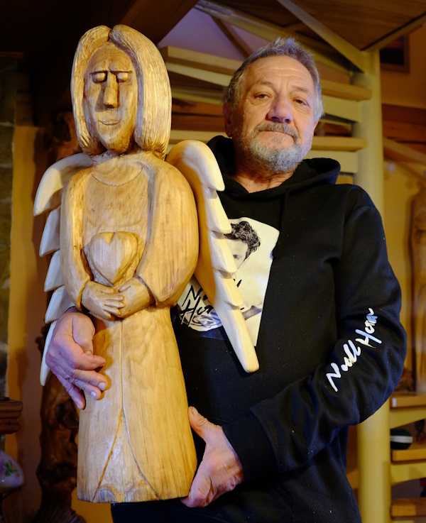 Já jsem řezbář – samouk. Na začátku jsem ale zkoušel malovat. Až k výstavám jsem to dotáhl. Krajinky… no přišlo mi to takové nezáživné. Lidem se to líbilo, ale potřeboval jsem dělat něco trochu jiného. A zkusil jsem to se dřevem. Neměl jsem nic – ani materiál, ani náčiní… no postupně jsem do toho pronikl.